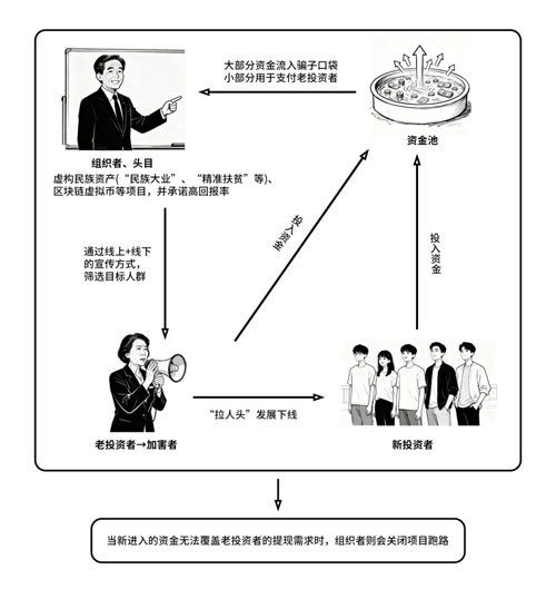 【直报网北京11月19日讯】(微信安全中心)微信始终致力于营造安全、绿色的网络环境,对各类违法违规行为保持严厉打击。近期,我们收到用户投诉,部分微信账号在微信群内存在组织传销、诈骗等违法犯罪的行为。此类行为通过假借民族资产解冻、国家政策和工程项目,以及区块链虚拟币、稳定币等为名头,以高额回报为诱饵,诱导用户加入微信群,并在群内鼓励用户拉人进群、发布不明链接引导下载涉诈App、开展每日签到、会议课程等洗脑活动并最终实施诈骗。上述行为严重侵害用户的财产权益。 上述行为一经发现核实,平台将依据国家相关法律法规以及《腾讯微信软件许可及服务协议》《微信个人账号使用规范》等平台协议及规则,视违规严重程度对相关账号进行阶梯式处理,多次违规者有可能永久限制登录,对确认违规的微信群,进行停用群功能处理。 不法分子通过仿冒官方图标与名称,利用用户对权威平台的信任进行视觉欺骗,降低用户防备心理,诱导用户下载涉诈App,请广大用户注意甄别。 部分违规内容示例▼ ![]() ![]() ![]() 常见手法解析 传销的核心是通过“拉人头”而非销售真实商品或服务来敛财,本质是拆东墙补西墙的庞氏骗局。 组织团伙往往打着国家、民族的旗号,通过伪造国家机关公文、证件、印章,编造国家相关政策等非法手段,虚构各类 “投资项目”,如“历史民族资产”“乡村振兴”“精准扶贫”“惠民生国债”,或是打着“区块链虚拟货币”旗号的项目,宣称 “免费挖矿”,无需实际操作即可通过“算力增值”“币价上涨”获利。 这类型的骗局通过“高额回报”吸引用户的注意力,同时鼓励用户“拉人头”发展他人成为自己的下线,以此获取更多收益。当拉人的资金不足以支付上线的收益时,资金链就会断裂,组织团伙便会迅速卷款跑路,参与者将面临资金损失和信息泄露双重风险。 ![]() 警惕此类“庞氏骗局”,牢记三个“不” 一、不轻信骗子的话术 警惕任何承诺“低投入高回报”的项目,所有声称是“国家秘密项目”“有官方背景支持”但要求保密、不对外公开的投资,基本都是骗局。对于打着“区块链虚拟币”等旗号,但本身没有任何技术实质和生态应用的项目,要保持高度怀疑。 二、不参与“拉人头”活动 对于要求先购买产品、缴纳费用方可获得会员或代理资格的情况,保持警惕,谨慎决策;若涉及鼓励发展下线,如引导不断邀请亲朋好友加入的,需谨慎参与,避免陷入风险。 三、不下载陌生App 正规应用仅通过官方认可的应用商店发布。陌生链接不点击,来历不明的App不下载,也不要随意信任陌生App,更不能轻易授权各类权限。 微信安全中心提醒:不法分子常利用老年群体对官方机构抱有天然的信任,通过伪装与欺骗,针对性地设计骗局。我们再次提醒广大用户,按照法律规定,组建传销相关的社交群组、招募会员、收取费用,或转发、鼓动、宣传相关信息,均涉嫌违法犯罪。微信团队也会加强对此类诈骗信息的打击力度,携手广大用户一起创造更加健康、绿色的互联网环境。