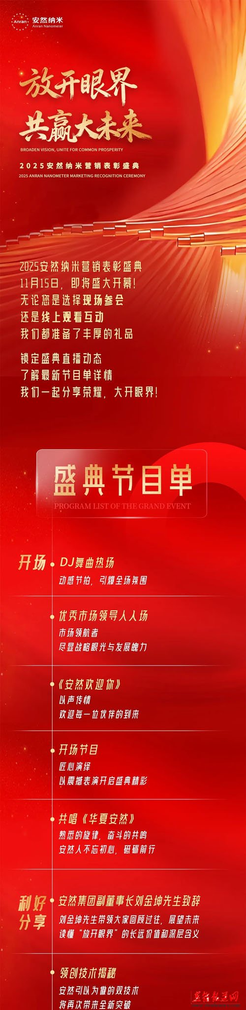 【直报网北京11月14日讯】(安然) ![]() ![]() ![]() (原标题:2025安然纳米营销表彰盛典节目单新鲜出炉) 责任编辑:一一 【特别声明:部分文字及图片来源于网络,仅供学习和交流使用,不具有任何商业用途,其目的在于传递更多的信息,并不代表本平台赞同其观点。版权归原作者所有,如涉版权或来源标注有误,请及时和我们取得联系,我们将迅速处理,谢谢!】 解读新闻热点、呈现敏感事件、更多独家分析,尽在以下微信公号,扫描二维码免费阅读。