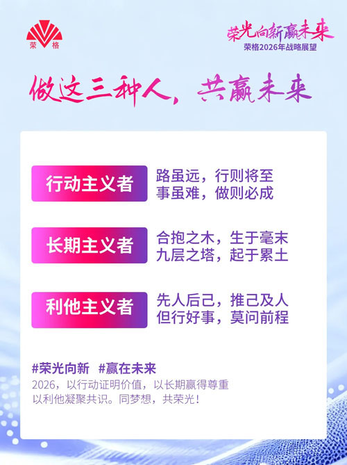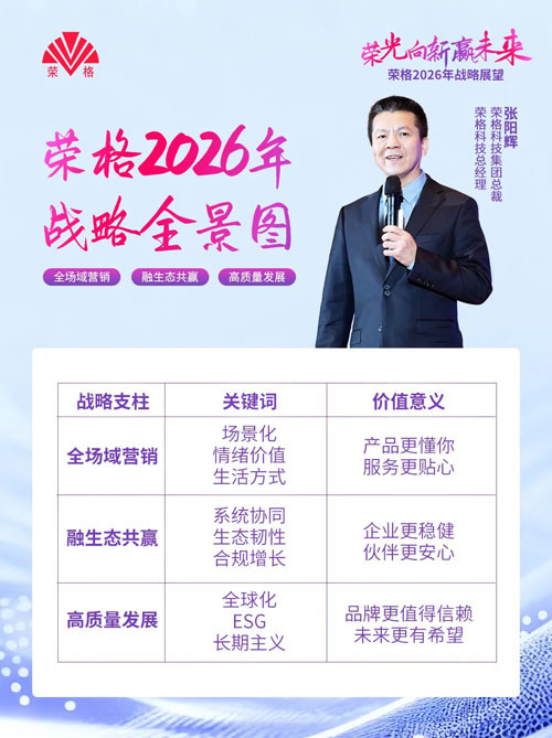 【直报网北京12月18日讯】(荣格)12月15日,我们共同见证了荣格发展史上又一重要时刻——“荣光向新·赢未来——荣格2026年战略展望会”隆重召开。会上,荣格对2026年发展战略、品牌战略及人才战略进行展望,为未来的前行之路,锚定新的方向。 荣格科技集团总裁、荣格科技总经理张阳辉先生在会上发表重要讲话,他提出荣格2026年要围绕“全场域营销·融生态共赢·高质量发展”的核心纲领,全面推进企业战略升级。 今天,让我们一起通过图解来展望这三大战略支柱——从“全场域营销”如何重塑用户连接,到“融生态共赢”怎样构建组织韧性,再到“高质量发展”如何引领我们走向世界级舞台。 荣格2026年战略展望 ![]() ![]() ![]() ![]() ![]() ![]() 2026,荣光向新赢未来! 2026,是全新的起点。 “荣光向新·赢未来”——这场变革,关乎产品,更关乎生态;关乎增长,更关乎责任;关乎今天,更关乎百年。 未来的荣格,将是一个——有温度的品牌、有韧性的组织、有格局的平台、有信仰的共赢体。 让我们携手并肩,以战略为帆,以信念为舵,在高质量发展的浪潮中,共创健康文明,共赴星辰大海!