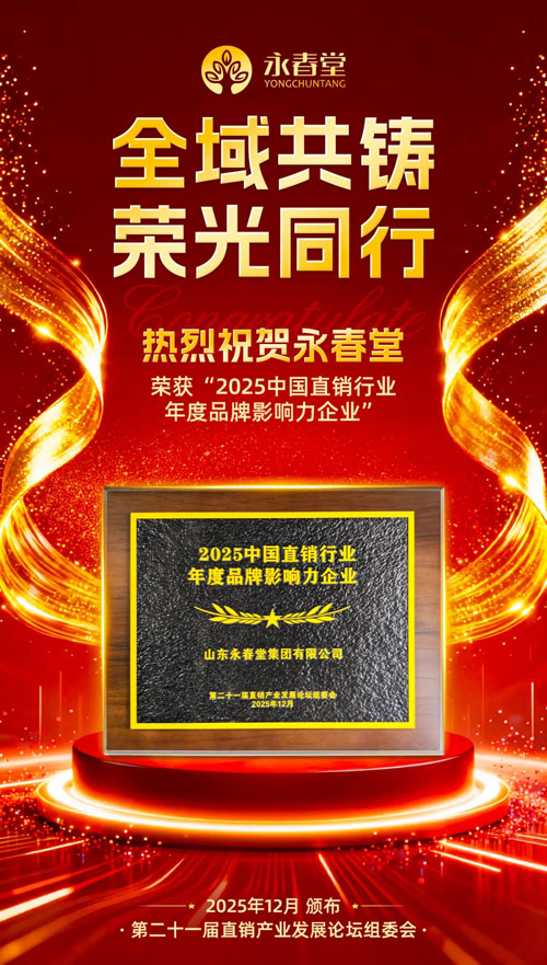 【直报网北京12月25日讯】(永春堂)12月5日,由中国世界贸易组织研究会支持的第二十一届直销产业发展论坛暨 2025 社交商业创新峰会,在北京中德国际会议会展中心隆重启幕。 ![]() 本届论坛以 “大直销・全场域・融生态・质发展” 为核心主题,汇聚行业监管领导、领域专家、企业高管及系统精英等多方代表,通过权威报告发布、主题演讲分享、圆桌深度论道及专项工程启动等环节,既全面复盘了 2025 年直销行业的发展成果,也深度展望了 2026 年的行业新机遇。 现场同步举办了两项重要活动:2025 海畴智库前瞻研究成果首发暨行业服务 “智汇谷” 启动仪式,以及中国直销行业营商环境优化协作服务工程启动仪式。其中,海畴智库发布了 7 份重点研究报告;“智汇谷” 平台将为行业提供深度内容、高端社交与个性化支持;营商环境优化协作服务工程则将凝聚行业力量、搭建专业服务平台,为行业高质量发展保驾护航。 ![]() 而在本次论坛的评奖环节,山东永春堂集团有限公司成功斩获 “2025 中国直销行业年度品牌影响力企业” 荣誉! 这份沉甸甸的荣誉由第二十一届直销产业发展论坛组委会于 2025 年 12 月正式授予 —— 作为直销领域极具分量的年度权威奖项,它是行业对永春堂在品牌建设、市场口碑、产业正向贡献等维度的集中肯定。 从深耕市场到跻身行业标杆,永春堂始终以 “全域共铸” 的合力稳扎稳打:从持续打磨产品力、迭代升级服务体系,到积极参与行业生态正向共建,我们以 “长期主义” 为初心,一步步收获了市场与同行的双重信赖,最终在众多企业中脱颖而出,摘得这份荣光。 这份荣誉的背后,离不开每一位合作伙伴的并肩同行,离不开每一位用户的信赖选择,更离不开永春堂全体同仁的坚守与奋进 —— 正是 “荣光同行” 的凝聚力,让我们在行业赛道上步履愈发坚定。 未来,永春堂将以这份荣誉为新起点,继续深耕品牌价值、释放品牌影响力,以更优质的成果回馈市场与每一份信赖,与所有伙伴共赴下一段高光征程!