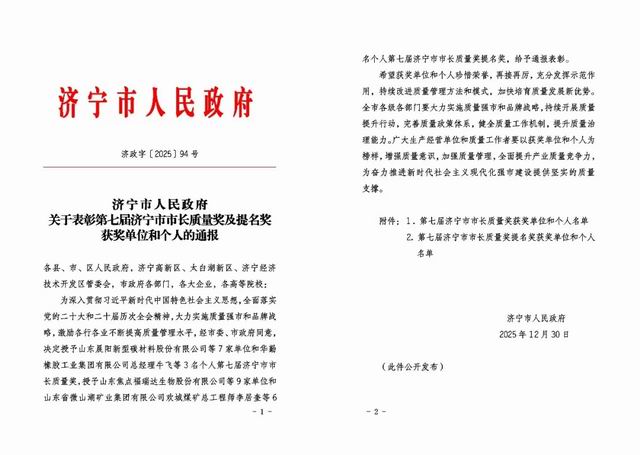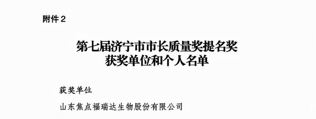 【直报网北京1月7日讯】(福瑞达)近日,第七届济宁市市长质量奖获奖名单正式揭晓,山东焦点福瑞达生物股份有限公司凭借卓越的质量管理水平、持续的创新发展能力及出色的综合绩效,成功荣获“第七届济宁市市长质量奖提名奖”。该荣誉是对企业长期以来坚持卓越质量,推动高质量发展的充分肯定,彰显了企业在质量管理领域的先进水平。 ![]() ![]() 济宁市市长质量奖是济宁市政府设立的最高质量荣誉,旨在表彰在质量管理、经营绩效、社会责任等方面取得突出成就,并为全市质量发展做出显著贡献的组织和个人。该奖项评审标准严格,竞争激烈。焦点福瑞达此次获奖,标志着企业在质量管理体系、品牌影响力以及综合实力等方面已居于全市行列。 作为生物医药领域的高新技术企业,焦点福瑞达始终将质量视为企业生存和发展的生命线。公司秉持“以科技创新为魂 为客户创造价值 以质量安全为本 为健康引领未来”的质量管理方针,构建了覆盖研发、生产、销售及服务全流程的高标准质量管理体系。通过技术创新、工艺优化和精细化管理,企业产品与服务始终保持卓越品质,赢得了市场的广泛信赖。