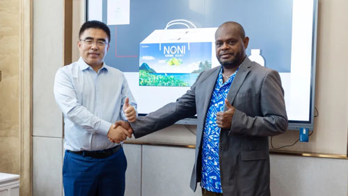 会谈重点讨论了诺丽果汁的开发与销售合作事宜。瓦努阿图被誉为世界优质诺丽果产地之一,独特的火山灰土壤、纯净无污染的热带雨林气候及充沛的阳光雨水,为诺丽果的生长提供了理想条件,使其富含多种维生素、矿物质和抗氧化物。诺丽果是瓦努阿图极具代表性的作物,诺丽果汁于2020年被官方指定为“国家级礼品”,相关产业也是当地重要经济支柱之一。