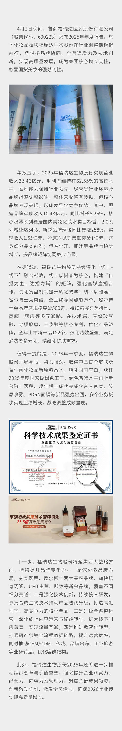 【直报网北京4月13日讯】(福瑞达) ![]() (原标题:福瑞达生物2025年报:颐莲、珂谧品牌领涨) 责任编辑:一一 【特别声明:部分文字及图片来源于网络,仅供学习和交流使用,不具有任何商业用途,其目的在于传递更多的信息,并不代表本平台赞同其观点。版权归原作者所有,如涉版权或来源标注有误,请及时和我们取得联系,我们将迅速处理,谢谢!】 解读新闻热点、呈现敏感事件、更多独家分析,尽在以下微信公号,扫描二维码免费阅读。