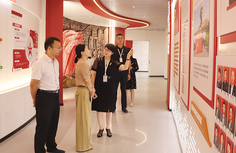 在绿之韵中心党建教育阵地,刘云书记就企业非公党建情况作了详细介绍。她表示,领导关怀彰显党建力量,领导重视彰显建党精神,领导支持彰显党建成果。绿之韵始终将非公党建工作置于发展战略高度,自2006年成立党支部,2013年获批成立党总支,2016年8月获批成立党委以来,坚持构建以集团党组织为核心,以集团工会、公益基金会为主体,注重红色基因塑造的新时代非公党建新生态,推进“三色、三有、三亮”建设,坚持“一融合、双培养、三引领、四坚持、五到位、六强化”党建工作法,实施“指导式”“责任式”“温情式”管理,形成了具有绿之韵特色的非公党建工作品牌。