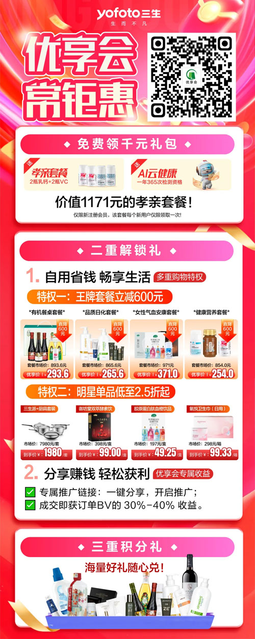 作为三生为会员打造的专属健康生活平台,优享会始终致力于: