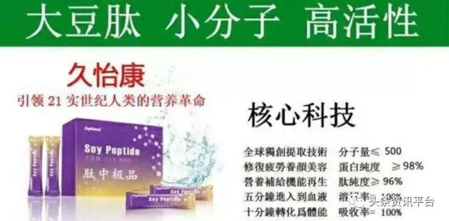 在本篇报道中,我们了解到了围绕着久怡康大豆肽等产品所存在的宣传问题,在下篇报道中,我们将关注的是久怡康公司为何会因团队计酬传销的违法行为,而遭到宁波市鄞州区市场监督管理局的行政处罚,请继续关注头条资讯平台。 (原标题:普通食品可以治尿毒症和高血压?久怡康旗下相关产品或涉嫌虚假宣传) 责任编辑:蓝莓 【特别声明:部分文字及图片来源于网络,仅供学习和交流使用,不具有任何商业用途,其目的在于传递更多的信息,并不代表本平台赞同其观点。版权归原作者所有,如涉版权或来源标注有误,请及时和我们取得联系,我们将迅速处理,谢谢!】 解读新闻热点、呈现敏感事件、更多独家分析,尽在以下微信公号,扫描二维码免费阅读。