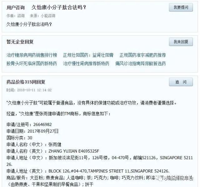 【直报网北京12月17日讯】(头条资讯平台)在上篇报道中,我们主要了解到了久怡康的发展历程,在本篇报道中,我们将重点关注的是久怡康的产品。据了解,在过去的这些年间,久怡康名下最为受经销商关注的产品当属久怡康大豆肽。 国食健字?治病案例 据相关推广软文显示,久怡康品牌下的所有保健食品,均已获得国家食品药品监督管理局批准(国食健字G20160415)。 而众所周知的是,保健食品不是药品,不具有治病的作用。“国药准字”是药品生产单位在生产新药前,经国家食品药品监督管理局严格审批后,取得的药品生产批准文号;而“国食健字”是由国家食品药品监督管理局审批的保健食品。批准文号为国食健字G或J,后面标的字母G指国产,J指进口。也就是说,久怡康旗下的这些产品都是国产的,而并非进口。 归根结底,保健食品不是药品,不具备治病功效。保健食品虽对身体机能具有一定的调节作用,但不能替代药物治疗,所以消费者患病时必须及时就医,不能将保健食品当做药品服用,以免延误治疗,加重病情。 然而,在如今的互联网上,利用久怡康的相关产品宣传治病功效的案例却是比比皆是。 有治疗尿毒症的: 还有治疗高血压和股骨头坏死的: 再比如治疗前列腺癌的病例: 其他案例也是数不胜数: 这些或出自经销商之口、或出自公众号“久怡康圆梦国际”等平台发布的相关案例的出现,还将涉及使用他人名义保证或以暗示方法使人误解其效用的行为。有业内人士指出,任何产品的广告都应当真实、合法,不得使用他人名义保证或者暗示产品功效误导消费者。凡是有明示或者暗示具有医疗作用的,夸大功能、虚假宣传或者其他容易给消费者造成误解的,违反相关法律法规的内容,或涉嫌虚假宣传。 资质几何,普通食品 在咨询药品价格315网之后,我们发现上述国食健字G20160415对应的产品为葵博士牌黄秋葵胶囊,保健功能为缓解体力疲劳,生产厂家为浙江葵瑞农业开发有限公司。可见,这款拥有蓝帽子资质的产品虽然与久怡康有关,但并非久怡康旗下的肽类产品。 经过进一步的调查,我们发现挂着久怡康牌子的大豆肽小分子肽等产品根本就不是保健品,只是普通食品。围绕着该产品,在网上流传着三种生产许可证编号。 至于久怡康和浙江葵瑞农业开发有限公司是什么关系,有知情人士透露,后者是久怡康收购的一家原料企业。 对于上述通过普通食品宣传可以治病或具有保健功效的行为,《食品广告发布暂行规定》第十三条指出,“普通食品、新资源食品、特殊营养食品广告不得宣传保健功能,也不得借助宣传某些成分的作用明示或者暗示其保健作用”。另外,我国《广告法》第十八条规定,食品宣传不得含有下列内容:表示功效、安全性的断言或者保证;涉及疾病预防、治疗功能;声称或者暗示广告商品为保障健康所必需;与药品、其他保健食品进行比较。 无独有偶,久怡康名下存在虚假宣传现象的产品并不只此一例,还有“轻草堂秋葵品萃饮”。 然而,在公众号“汇绅健康”等平台的宣传下,该产品却具有了增强机体免疫力、降低胆固醇、预防心血管病、抑制癌症肿瘤、排除体内毒素等十余种功效。 宁波市轲能贝沃生命科学产业有限公司官网的说法也无外其中: 毫无疑问,上述的这些宣传行为也涉嫌虚假宣传。 顺带一提,除了浙江葵瑞农业开发有限公司,蓝飞集团还投资了江苏俊启生物科技股份有限公司(据久怡康官网显示,久怡康的总部所在地就是江苏俊启生物科技股份有限公司)。而该公司曾遭到海安县市场监督管理局的行政处罚:1.处罚款327000元;2.责令停止销售食用油聚酯(PET)桶的行为;3.没收聚酯(PET)塑料桶(5L)100只。