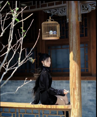 关晓彤穿黑色新中式服饰 持伞望向远方飒爽清冷(8)