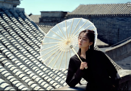 (原标题:关晓彤穿黑色新中式服饰 持伞望向远方飒爽清冷)