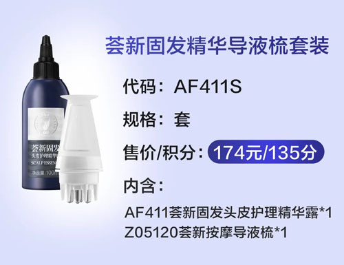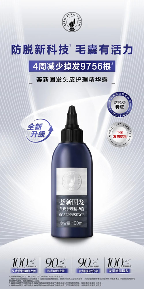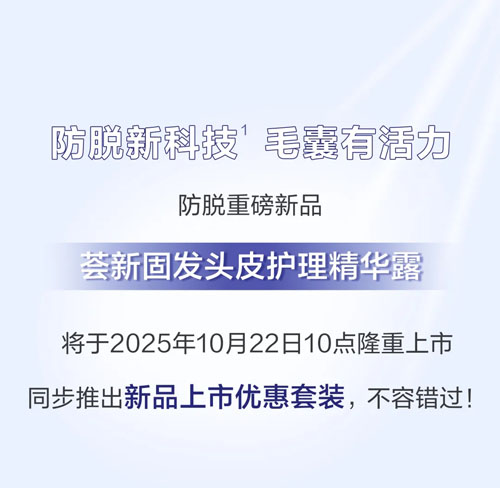 ![]() ![]() 01、荟新固发头皮护理精华露升级上市 【直报网北京10月16日讯】(完美)荟新固发头皮护理精华露以“固发防脱”为核心理念,添加「科技防脱因子1」新科技,激活细胞自噬2,「4周减少掉发9756根3」。 匠心融合侧柏叶、艾草、姜根、人参根等多重植萃精华,自然之源见证「稳固发根,预防脱发」。更蕴含腺苷及水解蛋白,「对头皮进行精细护理」! 产品信息: ![]() 说 明: 1.产品可使用电子礼券、购物礼券及优惠券,特殊说明除外。 2.产品积分可参与公司其他活动。 02、荟新固发头皮护理精华露上市优惠活动 防脱新科技1,涂抹有“新”意!新品上市同步推出「荟新按摩导液梳」及「荟新固发精华导液梳套装」,仅需174元即可获得「一瓶荟新固发头皮护理精华露+一个荟新按摩导液梳」的超值套装,涂抹更均匀,使用更便捷! 活动时间 2025年10月22日起 活动对象 全体会员 产品信息: ![]() 活动说明: 1.荟新固发精华导液梳套装,产品售罄或活动结束后下架产品,请及时参与活动。 2.产品积分可参与公司其他活动。 注: 1.指原料侧柏(PLATYCLADUS ORIENTALIS)叶提取物。 2.指含侧柏(PLATYCLADUS ORIENTALIS)叶提取物功效成分的复配原料作用机理及研究数据,非产品实际功效。