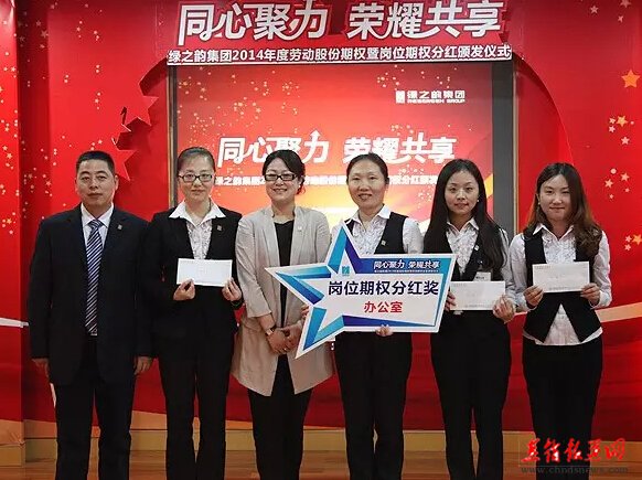 谜底二: 十二项福利机制 给你看五个别家没有的 劳动股份期权 “绿之韵模式”的劳动股份期权奖励机制,开创了直销企业主动将企业价值与普通员工共享的里程碑式先河。始于2011年,分为劳动股份期权(三年期)和劳动股份期权(五年期)两种形式,凡表现优秀,为企业健康发展做出过贡献的员工均有机会获得此项奖励。