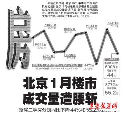 【直报网2月8日讯】(京华时报报道)来自亚豪机构、链家地产、中原地产等地产机构的统计显示,1月份包括北京在内的全国重点城市新房成交量普遍下滑,新年楼市开局遇冷。其中北京1月新房成交6908套、二手房成交8772套,分别同比下降44%、55.2%。 >>数据 月成交量创近9年第二低位 据亚豪机构统计数据显示,北京1月份商品住宅共成交6908套,成交面积74.42万平方米,成交套数、成交面积分别较去年同期下降44%、46%。6908套的月成交量也仅高于2012年1月的4473套,成为自2006年商品住宅开始网签、近9年以来元月商品住宅销量出现的第二低位。 二手房市场同样出现下滑趋势,根据链家地产市场研究部统计,1月北京市二手住宅成交8772套,成交量环比降20.1%,同比降55.2%。 成交均价连续两月环比下降。1月成交均价为29502元/平方米,环比下降1.87%。从链家监测的各区域看,超过一半的区域1月价格下跌,但整体下跌的幅度较小,市场尚处于较为平稳的状态。从供需上看,虽然去年12月新增客源有所增加,但供需仍较缓和的状态使得2014年年初房价上涨乏力。 除北京外,全国其他城市1月楼市成交也出现下滑态势。据中原地产研究中心监测数据显示,1月全国54个重点城市新房住宅成交22万套,相比12月下调15%,同比2013年初下调了19.6%。因为春节长假,预计2月份全国楼市成交将继续明显下滑,这也将可能出现持续4个月成交量下调。 在成交量下降的同时,1月份北京楼市供应量也遭遇下滑。据亚豪机构统计数据显示,1月份,包含首开熙悦睿府·书香、红杉公馆、金隅香溪家园、亦庄金茂悦等项目在内,北京楼市仅有7个项目开盘,市场新增供量2531套。 >>分析 库存压力不会长期存在 链家地产市场研究部分析师张旭认为,1月成交量同比大幅下降,一是受今年春节提前的影响,二是银行房贷趋紧导致部分交易成交周期较长。此外,高企的房价也使刚需购房者首付压力陡增,观望情绪较浓。 亚豪机构副总经理任启鑫预计,受春节假期冲击,项目开盘量将从2月下旬逐步增加,短期内供需压力仍将存在。但鉴于从去年开始延续至今的土地成交高峰将于今年开始陆续形成实际供应,以及自住商品房的大幅放量,此次库存压力不会长期存在。▲ (原标题:北京1月楼市成交量遭腰斩 创近9年第二低位) 责任编辑:王鹏娟 |
