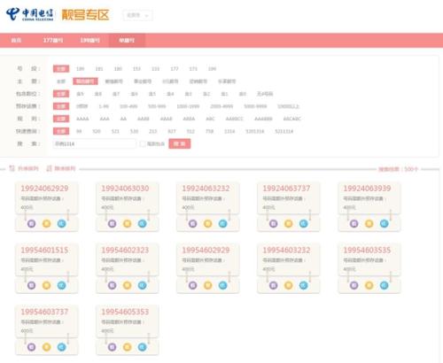 某运营商展示的“靓号”。图片来源:某运营商官网截图 【直报网北京10月15日讯】(中国新闻网)近日,有消息称,有用户正在使用的手机号码一夜之间“被靓号”,需要额外缴纳39元最低消费,只因为尾号是个“8”。 还有这样的操作?究竟什么号码才算“靓号”呢,目前“靓号”市场情况如何?记者对此进行了调查。 运营商最新回应“被靓号” 近日,有媒体报道,广东电信用户兰晓月用了数年的号码突然被“靓号加身”。 “工作人员告诉我,我的号码以8结尾,属于‘靓号’,除了缴纳每月的主副卡套餐费用199元以外,副卡还需要额外缴纳39元最低消费。”兰晓月称。 截至发稿,中新网记者暂未收到中国电信对此事的回应。 在浙江,类似事情也有媒体报道,当地移动用户王楠发现,自己的“靓号”合约虽然三年到期,但最低消费限制要到2099年才能结束。 不过中国移动跟中新网记者表示,经过调查,浙江移动的“靓号”用户中没有叫“王楠”的,“上述文中的记者也提供不了客户的手机号码,所以无法进一步查证。”