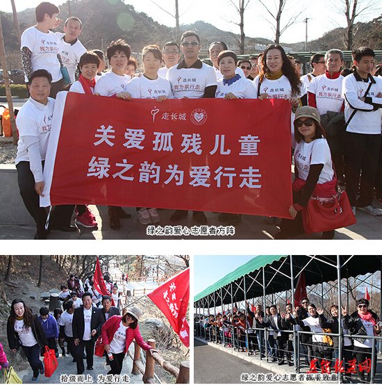 积跬步成千里,集细流凝成爱的海洋。绿之韵人深知:看似遥遥无极的长城,如果我们每人愿意行走10公里,然后相加,就可以走出很多个长城来;如果我们每个人愿意奉献一点点的爱,集结全球热心人士的爱,就可以帮助千千万万的孤残儿童。为爱,绿之韵人一起行走! 下午13点,ICC中国北京首届“走长城”公益活动举行了简短的启动仪式。活动主持人简单介绍了今天的活动流程,爱心义工们带来了感人的爱的合唱。ICC中国发展总监吴双女士为绿之韵“走长城”爱心志愿者团队授旗,并宣布“走长城”为爱行走公益活动正式启动。 由于行进道路比较狭窄、坡度较大,大家三五成群,从慕田峪长城入口的中华梦石城出发,沿着北步道,一路意志坚定,沿着几里长陡峭的石阶拾级而上,手拉着手欢呼雀跃地向着长城10号炮台进发。在这条人流中,汇聚着绿之韵爱心经销商、公务员、知识分子、企业老板、务工人员、学生……他们彼此并不相识,博爱的名义却把他们紧紧连在了一起。相识的、不相识的,大家挥舞慈善红旗,以眼神鼓劲,用微笑问候,朝着一个共同的梦想、共同的爱心、共同的追求徒步前行。共沐大爱的心灵长河,谁人又不被感动呢? |