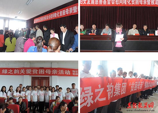 在绿之韵集团为贫困母亲发放救助金的仪式上,北京博爱妇女发展慈善基金会副会长魏振讲到,隆化对我们并不陌生,因为大英雄董存瑞在解放隆化县的战斗中为国家英勇献身的革命精神从小激励着我们。我们北京博爱妇女发展慈善基金会基金会也希望借助我们微薄之力帮助更多贫困母亲。送温暖,手拉手心连心,以后将设立专项进行一对一扶贫。 北京博爱妇女发展慈善基金会会长陈富刚在救助金发放仪式上感慨道:“首先感谢绿之韵集团的爱心捐款。就全国范围来说,贫困母亲及困难群众数量还很多,每当在现场发放救助金或去贫困家庭走访时,看到她们的实际困难,总感觉我们发放救助金太少,总感到自己还有些力不从心。通过这种爱心形式,我们希望对部分贫困母亲及其困难家庭解决一点实际困难,更重要的是希望母亲们自己要对生活充满信心,克服困难,特别是精神上对未来要有期望,自强自立。同时,通过这样的爱心活动,期望有更多的爱心人士关注贫困母亲及其她们的家庭。” |