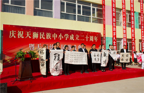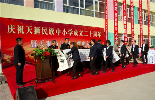 随后,与会领导及嘉宾共同完成了天狮幼儿园落成剪彩。薛官屯乡中心校校长李金海表示,企业家爱心人士的义举将永载家乡教育发展史册,永远铭刻在家乡人民的心中。天狮民族中小学及幼儿园全体师生一定不辜负党和国家的重托,不辜负以天狮集团和李金元董事长为代表的社会各界人士的鼎力支持,不辜负家乡父老的殷切期望。天狮幼儿园全体教师将继续发扬天狮中小学的教育精神,尽责敬业、俯首用心,努力办好让家乡父老满意、社会各界认可的乡村教育。 ![]() ![]() 活动结束后原沧县政协副主席刘云甲老先生 现场书写“一体多翼”赠与李金元董事长 (原标题:天狮民族中小学二十年校庆暨天狮幼儿园落成典礼在河北省沧县举行) 责任编辑:小宇 解读新闻热点、呈现敏感事件、更多独家分析,尽在以下微信公号,扫描二维码免费阅读。