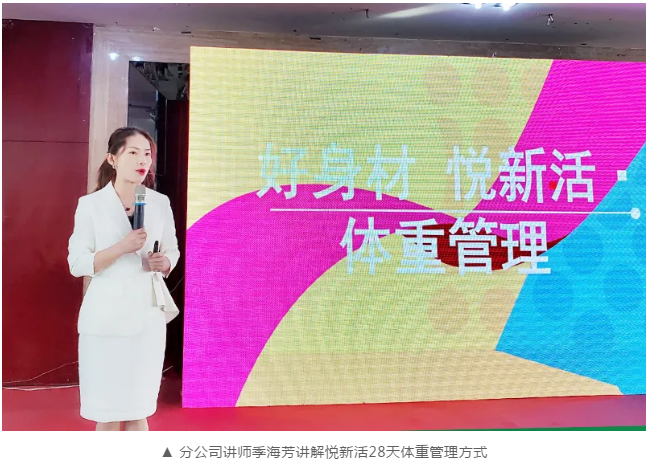 分公司讲师崔文晋深入浅出地为大家带来全面的新品解读。讲师季海芳为大家讲解悦新活28天体重管理方式,帮助大家打造完美身材。