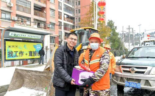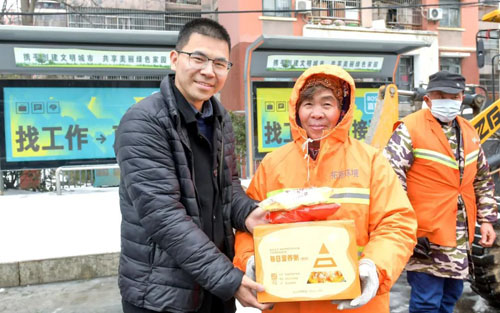 【直报网北京2月27日讯】(跃莱)元宵节前夕,武汉遭遇新一轮雨雪冰冻天气。跃莱党支部书记夏南一行顶风冒雪来到武汉东湖高新区九峰街道,为辛苦工作的环卫工人带来了汤圆、营养粥、疏通贴等物资,向他们致以崇高的敬意! ![]() ![]() ![]() ![]() “环卫工师傅们,你们辛苦啦!”在铲雪除冰的工作现场,夏南向正在紧张工作的环卫工师傅们致敬:“暴雪天气,我们能够顺利出行的背后,是无数环卫工人的辛苦付出,感谢你们!”他还贴心地为环卫工人讲解营养粥的口味和食用方法,“这个粥用50度温水冲泡一下,就可以食用了,黄颜色的南瓜粥咸咸的,紫色的紫薯粥甜甜的,大家可以根据自己的口味选择。” ![]() “今天这个粥吃起来特别香,特别暖心,感谢爱心企业!”环卫工人陈春芳忙里抽闲,喝完一袋跃莱营养粥,立马又投入到紧张的除冰作业中去了。 今年63岁的环卫工人胡丙忠,从21日晚上接到任务后,作为突击队员,他第一批投入到除雪工作中。“我是铲冰突击队的一员,已经连续工作了十多个小时,感到关节有些酸痛,送来疏痛贴对我们老人非常有用,我忙完后可以马上使用。“胡丙忠说,“武汉的人民和企业如此善待我们,我们更要尽力尽责做好除雪和环卫工作,给市民一个良好的城市环境。” ![]() ![]()