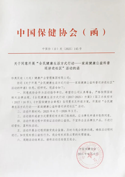 可喜的是,近日,双迪公司正式获得中国保健协会复函,批准开展"全民健康生活方式行动——家庭健康公益科普巡讲进社区"活动!这一国家级公益平台的授权,标志着 "双迪健康100大使计划" 迈出关键一步。 (原标题:双迪健康“100大使计划”公益项目启动) 责任编辑:一一 【特别声明:部分文字及图片来源于网络,仅供学习和交流使用,不具有任何商业用途,其目的在于传递更多的信息,并不代表本平台赞同其观点。版权归原作者所有,如涉版权或来源标注有误,请及时和我们取得联系,我们将迅速处理,谢谢!】 解读新闻热点、呈现敏感事件、更多独家分析,尽在以下微信公号,扫描二维码免费阅读。