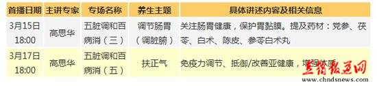这两期节目结合无限极健康理念,充分呈现了“三调养”中“调脏腑”、“扶正气”的核心内容。业务伙伴可以将播出信息分享给朋友,帮助大家更好地理解无限极的健康理念和产品。 高思华教授介绍: 无限极专家组成员之一,中国中医科学院研究生部主任,国家中医药管理局科教司司长,北京中医药大学校长,医学博士,教授,博士生导师。▲ (原标题:央视《健康之路》无极限专场即将播出 讲述养生之道) 责任编辑:王昆伟