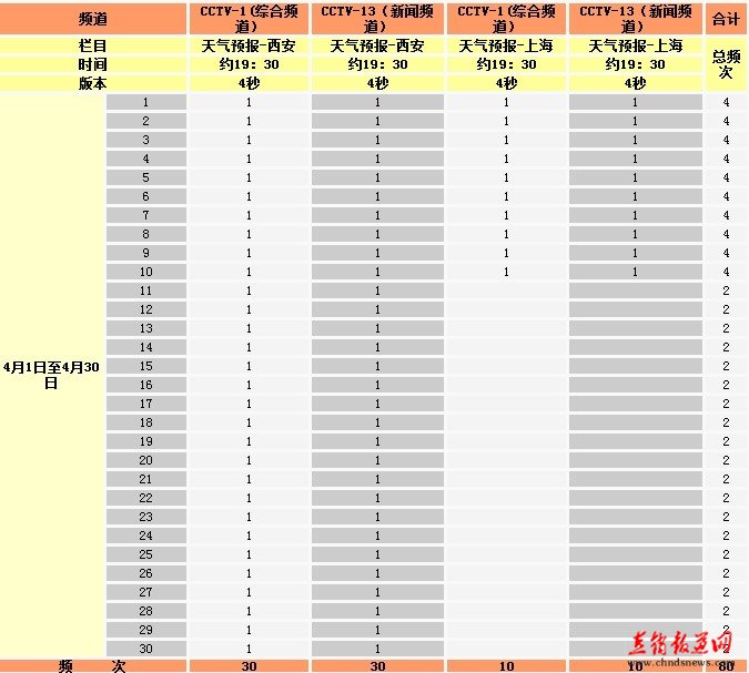 已确定的4月CCTV广告发布排期如下: