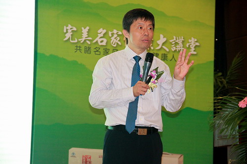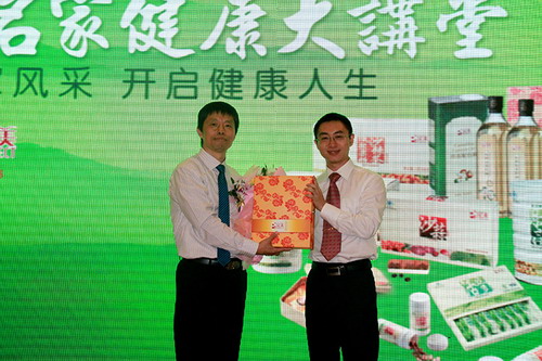 分公司业务部邬鸣经理为史永亮教授送上压榨山茶籽油 一首欢快明亮的舞曲拉开了完美名家健康大讲堂的帷幕,史永亮教授通过多年积累的理论知识和临床实践,把饮食健康观念生动地传授给在场的完美伙伴,让他们更好地了解养生之道,丰富了大家健康理论知识,增加了大家对完美牌压榨山茶籽油和营养配方油的信心,并感受到该类产品的独到作用。 |