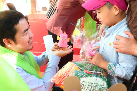 广州,市民们兴趣满满地与可爱的“动物”合影 |