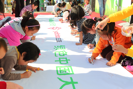 上海,活动现场设置的“健康任我选”、“环保钓起来等互动小游戏