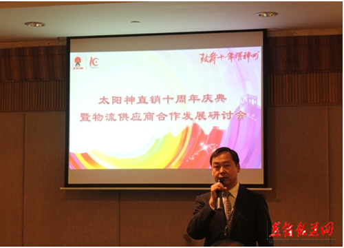 【直报网1月12日讯】(太阳神)2014年12月28日,在太阳神直销十周年庆典上,太阳神营销总部总经理张鸣先郑重发布了《太阳神直销第三个五年规划》,正式吹响了向“实现百亿规模”及“直销集团化运作”两大核心目标进军的号角。 为使“三五规划”更好更快地落到实处,12月29日,太阳神于东莞国际会展酒店召开太阳神直销十周年庆暨物流供应商合作发展研讨会。太阳神营销总部副总经理韩宗平、副总经理助理方俊等公司领导以及营销总部物流中心全体员工、太阳神物流合作伙伴共同出席了本次会议。