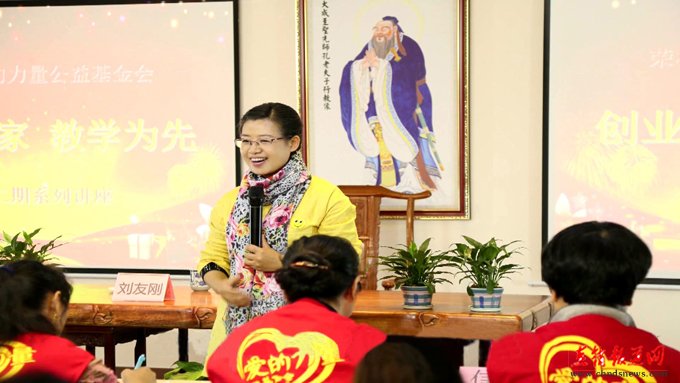 荣格教育培训中心讲师吴小英在向学员们讲授圣贤文化