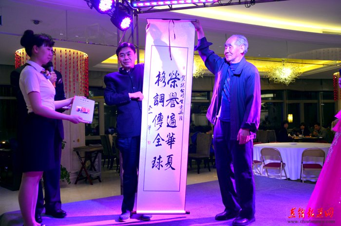 【直报网4月20日讯】(荣格科技)2015年4月11日,荣格科技集团优秀代理商太原年会在山西国际会议中心举行,年会结束后,荣格科技集团高层领导、重要嘉宾和杰出优秀代理商盛装出席了年会晚宴。这天晚上,原山西省古交市政协主席徐老先生向荣格科技集团赠送亲笔字画。