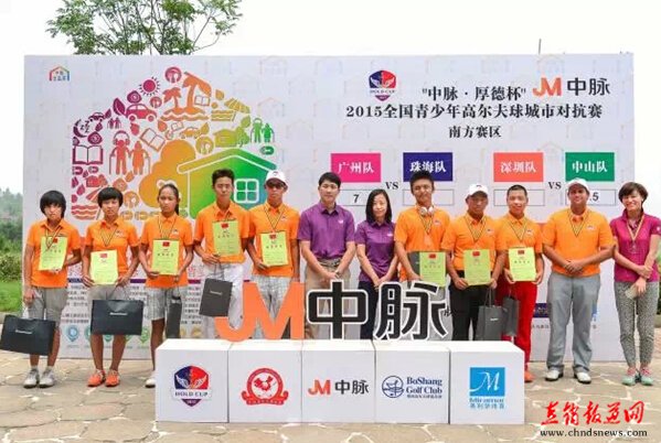回宏亮先生与何仲铧先生为冠军广州队颁奖 中脉中国区媒体外事副总裁回宏亮先生和狮子湖乡村俱乐部总经理何仲铧先生为冠军队伍广州队颁发奖牌、荣誉证书,中国青少年高尔夫球协会刘荣耀先生为广州队穿上代表“中脉•厚德杯”荣誉的冠军蓝夹克。广州队领队梁旭阳先生也发表了他的感言:“很感谢高协和各单位的付出,为孩子们提供这么好的一个平台,广州队很荣幸夺得了冠军,同样深圳、珠海、中山各队的实力也不容小觑,很高兴看到青少年高尔夫的水平正在不断的提高”。同时,梁领队表示对广州队的表现非常满意,他们赛出了风格赛出了水平,更值得表扬的是胜不骄败不馁的精神。接下来,广州队也更要在比赛中寻找不足好好训练,为总决赛做准备。 厚德杯为青少年提供绝佳平台中高协领导盛赞赛制意义 “中脉•厚德杯”赛制如美国著名“莱德杯”赛制,被誉为中国的“青少年莱德杯”,其多元化和队际比洞赛的赛制对球手们的抗压性和应变力提出很高的要求,同时也激发出青少年选手不屈不饶的精神和为团队荣誉而战的决心,对青少年来说是一个不可多得的赛事平台。中国青少年高尔夫球项目负责人刘荣耀先生盛赞了这个赛事给青少年带来的帮助。 |