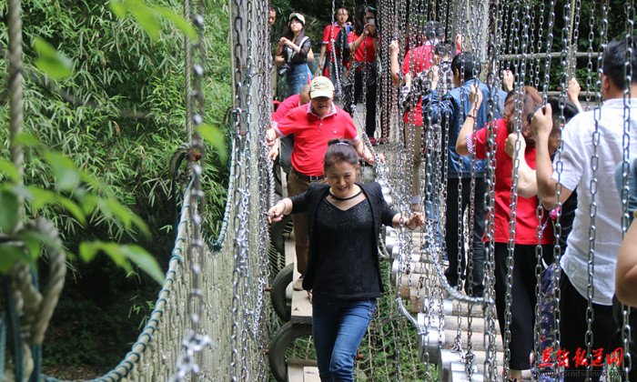 伙伴们跨越黑山谷铁索桥