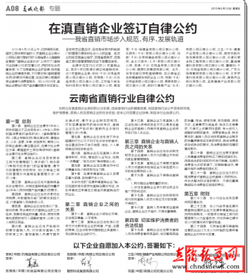 【直报网6月15日讯】(太阳神)规范经营是一家企业发展壮大的重要保障,太阳神直销深谙这一点,自成立以来,一直以高标准严格要求自己,不仅严把产品质量和服务关,还积极参加各地直销企业监管座谈会,努力促进直销行业的规范、健康、有序发展。5月29日,太阳神参加了“云南省第十三届直销监管部门直销企业座谈会”,并签署了《直销行业自律公约》,对此,昆明《春城晚报》于6月12日A08版发表了题为《在滇直销企业签订自律公约》的专题,对太阳神等直销企业进行了报道,并表示了肯定。▲ (原标题:履行社会责任获赞 春城晚报报道太阳神签订自律公约) 责任编辑:小申
