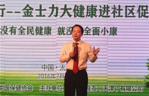 会议结束之际,金士力佳友副总经理张硕先生做总结演讲,张总指出天士力控股集团是大健康产品的创造者、大健康管理方案的设计者、大健康文化的践行者,按照大健康产业的战略布局和规划,金士力作为天士力大健康产业健康保健板块的引领者,将围绕“幸福一家 健康全球”的企业理念,不断研发和创造更多优质和更加丰富的大健康系列产品。张总表示,为了让消费者吃得放心、用得安心,我们坚持从源头上控制产品品质,打造金士力这个金字招牌。与此同时,我们倡导新营销,不断推广体验营销、服务营销、快乐营销的文化。希望大家都能够不断地参与进来,让大健康这种理念和文化深入到千家万户,让更多的家庭能够过上健康的、高品质的生活。