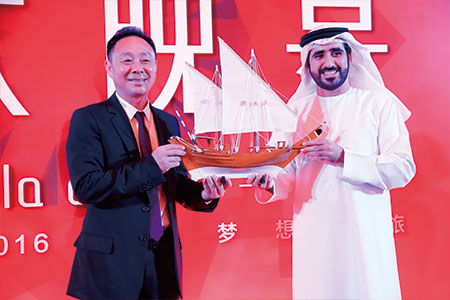 塔瑞克阿勒哈什米先生向黄董赠送象征着一帆风顺的帆船 |