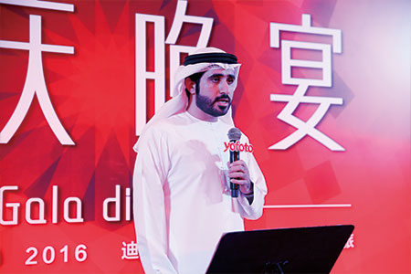 三生伙伴与迪拜当地政要合影留念 “我希望三生贵宾能够享受这个夜晚,并衷心地希望大家在迪拜期间能够感受到这座城市的热情和美丽,以及来自阿拉伯的文化和风俗,更加希望三生的客人能将迪拜作为下次旅行的目的地。”
