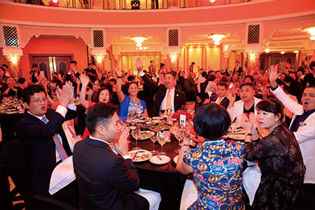 三生营销精英又一次相聚在海外,共襄盛会 梦想晚宴 绽放帆船酒店金色大厅 8月31日晚,三生(中国)2016梦想之旅晚宴在迪拜七星级帆船酒店金色大厅盛大举行。三生(中国)董事长黄金宝,三生(中国)市场运营副总裁李津,首席销售总监伍斌,首席销售总监黄春荣、项燕伉俪携200余三生营销精英出席晚宴。 晚宴当天,迪拜政府迪拜旅游局高级亚洲、澳洲区总裁塔瑞克阿勒哈什米先生,尤瑟夫集团副总经理及股东尤瑟夫·艾哈迈德·阿勒尤瑟夫先生,阿联酋航空公司大客户开发经理瑞提·本加比女士都莅临现场,与三生家人同庆。