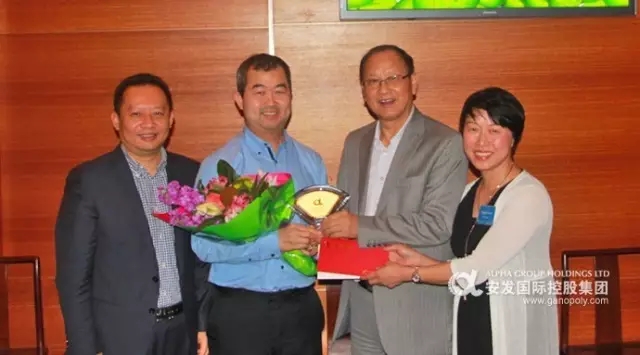 高益槐教授、高炜总裁、陈晓燕总经理为叶贤惠副总经理颁发十年服务奖并留影 当晚的奖项是对在安发(新西兰)工作十年或以上的同仁的一种褒奖,共有六位员工获奖,他们分别是:安发(新西兰)副总经理叶贤惠、生产部经理Davy 许、GMP车间主管Lisa 王、项目顾问Joseph 王、旗舰店店长Karen杨、GAP车间主管QUENCY徐。高益槐教授、高炜总裁和陈晓燕总经理分别为获奖同事颁发了专门订做的安发十年服务纪念纯金金牌、酒店VIP住宿卡和鲜花等。另外,两位元老级员工蔡佳妍和曾楷也获得特别服务奖,他们两位都参与了安发最初的创业阶段,后来因为家庭或个人原因离开安发,最近重归安发大家庭并担任要职。 获奖员工纷纷回顾了自己与安发的不解之缘。Lisa 说,2004年加入安发时,在蘑菇厂工作,当时劳动强度很大。两年后她调到GMP车间,没想到这一干就是十几年。她深情地感谢安发给她工作机会,也感谢高益槐教授和高炜总裁对她的帮助和支持。
