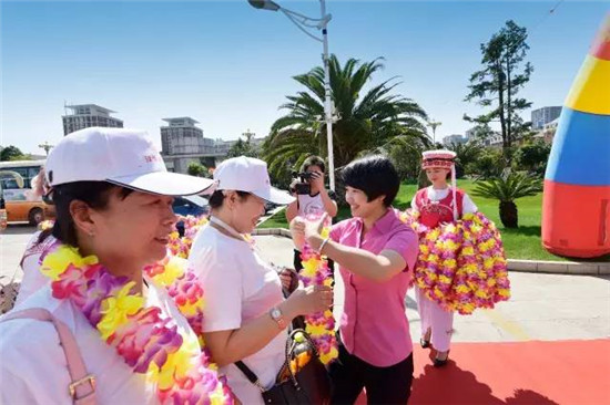 理想领导为理想家人们戴上花环 此次千年茶乡探秘之旅为期5天,理想家人将深入到理想科技集团有限公司昌宁产业园实地参观考察。昌宁是世界茶树的发源地和原产地之一。早在1938年,昌宁就是“滇红”的重点产区。昌宁茶厂成立后,所产的精制红茶,曾长期作为国家出口创汇重点产品,远销亚、欧、美20多个国家和地区。