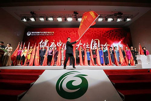 活动最后,“健康中国·大任国珍——旗镇冀门”画册盛大发布。河北分公司宁志君经理致辞,号召在场的新时代人肩负起大任国珍的社会责任。舞台上来自河北地区的35家国珍健康生活馆馆长共同上台,挥动馆旗,点燃了全场新时代人的激情。随后,在歌唱祖国的歌声中,巨大的新时代司旗飘过全场,活动在热烈的氛围中圆满落幕。