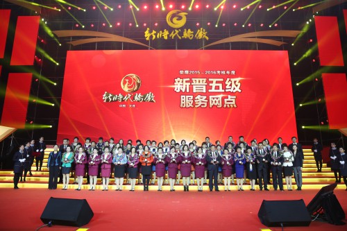 受勋的新时代精英走上星光大道 公司专家刘占文、金延明,领导班子成员及公司总监分别为新晋的各级服务网点负责人颁发了荣誉勋章。聚焦的镁光灯频频闪烁,记录下授勋精英荣光绽放的瞬间。这种激励和嘉奖,将激励他们在今后的事业发展中大放异彩。