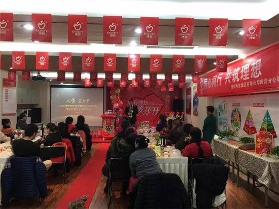 ![]() 2016年12月12日,“2016理想湖南分公司年会暨益妙保尔新品发布会”在美丽的江城武汉胜利召开,理想家人齐聚江城,共同分享茶生活方式的美好,见证理想三宝之一“益妙保尔”的火爆上市。现场异彩纷呈的活动,理想家人精彩的分享,为理想送上美好的新年祝福。最后,全场唱响《理想有你》,共同展望未来。相信华中市场一定会顺势勃发,剑指2017! 四川分公司 ![]() ![]()