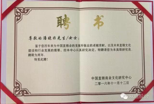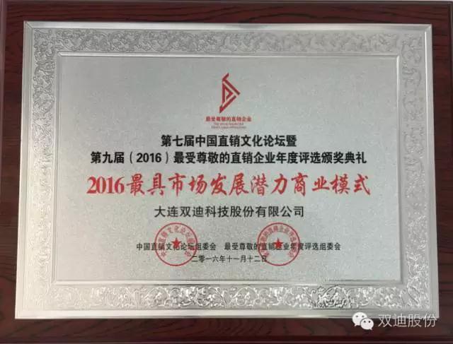【直报网北京11月15日讯】(双迪)2016年11月11日-13日,“第九届(2016)最受尊敬的直销企业年度评选颁奖典礼”在北京万达嘉华酒店隆重举行,来自企业、媒体、市场、学界等各方人士共计上千人参加了此次盛典,共同见证了2016直销行业的荣耀,双迪股份副总裁鲁飞应邀出席了盛会。 会上,五大系列奖项分别颁发给获奖者。鉴于双迪股份历年来为中国直销业的发展所做出的贡献和2015—2016年度的实际成绩,为树立典范,表彰先进,经网上调查投票、各地经销商推荐和组委会专家评审委员会审核,授予双迪股份“2016最具市场发展潜力商业模式”。同时鉴于董事长兼总裁潘晓非历年来为中国直销业的发展所做出的卓越贡献,以及未来直销文化建设和行业发展的需要,经中国直销商业文化研究中心决定,特聘潘晓非为高级研究员。 作为直销行业重量级的最受尊敬的直销企业年度评选颁奖典礼,大会汇聚了国内和海外最具实力的直销企业、领导、团队、行业精英,颁奖典礼现场座无缺席,呈现了一场直销饕餮盛宴。双迪股份获此殊荣,意义非凡,不仅是直销业界对双迪直销事业发展给予的高度认可,同时也再次用实力证明,双迪首创的全关系营销模式,更是被认同、被效仿、被推崇。全关系营销模式正在成为中国商业创新的新地标,代表中国特色营销发展模式未来。 出席本届年会的主流媒体有:中央电视台、新华网、法制日报、中国消费者报、中国工商报、人民政协报、人民公安报、人民法治网、京华时报、中国名牌杂志、央视发现之旅、人民网、中国网健康频道、新浪网、腾讯网、北京电视台、头条新闻网。直销行业媒体有:中国直销网、直销博客网、直销道道网、反传销志愿者联盟网、北京海畴传媒、武汉侯普传媒、广州晨讯传媒、重庆中国直销、直销人网、直销头条网、直销360网、营讯社。 (原标题:第九届(2016)最受尊敬的直销企业年度评选颁奖典礼在京盛大召开,双迪股份和董事长潘晓非获殊荣) 责编:小美 解读新闻热点、呈现敏感事件、更多独家分析,尽在以下微信公号,扫描二维码免费阅读。