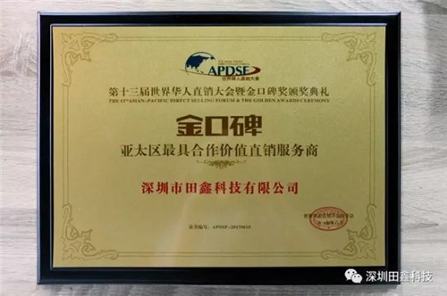 ![]() 【直报网北京6月22日讯】(田鑫科技)2017年6月6日,以“拐点下的直销新业态”为主题的第十三届世界华人直销大会暨2017直销奥斯卡“金口碑”奖颁奖典礼在广州白云国际会议中心隆重举行。国家工商行政管理总局原直销监督管理局巡视员沈根申,国家工商行政管理总局消费者权益保护局原副巡视员武高汉,商务部市场秩序司原正司级巡视员温再兴,广东省直销企业协会秘书长王克东,原广东省打传办专职副主任朱国汉,中共广东省委宣传部原副部长、省社科院原党委书记李子彪,江苏省工商局公平交易局原副局长朱永才。深圳市田鑫科技有限公司应邀出席会议。 ![]() 本次会议设置“2017中国直销创新驱动与转型发展高峰论坛”“2017中国直销创业领袖成功分享会”等多个主题特色论坛,探讨拐点之下中国直销公共政策、大健康产业消费方式、行业竞争形态、企业经营、营销管理、产品和实操技能的走向,为直销新业态的发展指明方向,真知灼见引发了在场听众的热情欢呼。 ![]() 当晚19时,“致敬创变者·第十三届金口碑奖颁奖典礼”隆重举行,大会迎来高潮。本届金口碑颁奖典礼以“致敬创变者”为主题,表彰为行业转型发展作出突出贡献的创变者。会上,深圳市田鑫科技有限公司荣获“亚太区最具合作价值直销服务商”大奖。 ![]() “金口碑奖”的获得者和获奖单位,有的履行企业社会责任、投身公益慈善,有的创新营销方式方法,有的奉献实操经验,有的专注创新产品研发,有的致力用户体验,有的致力品牌、塑造行业社会形象,有的创新系统产业化,展示了服务、敬业、塑造行业正能量的价值取向。 ![]()