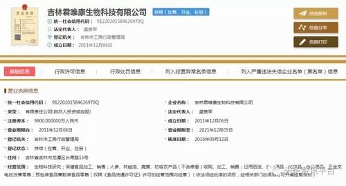 据网络资料显示,君唯康生物科技有限公司是集科、工、贸体化,产、供、销一条龙的现代化民族企业。拥有高新技术、标准规范化的生产基地,规模化的养殖基地和种植基地;企业以开发长白山区域特产资源深加工为基础,以挖据和推广人参文化为契机;同时与多家科研院所和生产单位自主联营,生产高科技、自主品牌的天然生态健康养生食品。