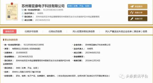 【直报网北京2月24日讯】(直销头条网)直销人透露,苏州蒂亚康电子科技有限公司(以下简称蒂亚康)采用直销模式运作市场。 据官网资料显示,蒂亚康电子科技隶属于香港胜唯国际有限公司营运总部位于中国上海,我们是一家集研发、设计、销售为一体的专业健身器材、按摩器材产品供应商。自建成以来胜唯一直秉承“为社会培养人才,行业搭建平台的宗旨,始终坚持为“以人为本”,“以客户为中心”的经营理念;以“让全球人都脱离亚健康,享受健康人生”为使命奋斗不息。几年来一路高歌,在全球拥有40多家分公司,每年数百万的消费者从我们提供的优质产品和服务中受益,享受更健康的人生。目前我们的产品已进驻香港、中国大陆、台湾、日本、欧洲的各大商场。 直销头条网编辑在国家企业信用信息公示系统查询到苏州蒂亚康电子科技有限公司成立于2016年12月14日,注册资金10万人民币。法人代表向明风,监事李辉,执行董事向明风 ,经理向明风。 ![]() 蒂亚康产品:按摩器材系列、健身器材系列。 ![]() 蒂亚康奖金制度: 1、会员投资配套有40—60%进入大盘购买电子股 2、做市场的会员所有奖金的30%都会进入大盘购买电子股 3、会员挂买股票后,有30%需要重新进入大盘购买电子股 4、创新的双涡轮模式,SVI全部会员配套的的多财,每天6%进入大盘购买电子股 5、所有奖金收益,卖股收益的10% 进入连锁钱包。用于激活子账户。 注:新会员进场只占平台运转的20%~外循环、其他的80%都是老会员在推动发展~内循环、而且入单大多都是对平台了解的老会员(三进三出模式➕利复利模式) 动静收益指南 1--SVI的静态收益是你投入本金每年会4倍以上增长,胜威总裁给会员的承诺是每年拆2次以上,也就是2乘以2乘以2等于6—8,也就是最低提现2-4剩余2-4倍继续复投。 2--动态奖金是推荐了新的理财会员,赚取推荐奖金及对碰奖金以及其他几项被动收入,这些收益会体现在你的【现金钱包】里 这就铸就了SVI是没有输家的平台,真正做到静动结合,资金自由。 5311系统分配 1、奖励50%进去现在钱包可以提现。 2、30%进去多福。 继续购买公司电子股。 3、10%进入连锁钱包, 用于注册账户 4、10%进入消费币。可以在公司博彩,实体消费。 1、会员投资配套有40—60%进入大盘购买电子股 2、做市场的会员所有奖金的30%都会进入大盘购买电子股 3、会员挂买股票后,有30%需要重新进入大盘购买电子股 4、创新的双涡轮模式,SVI全部会员配套的的多财,每天6%进入大盘购买电子股 5、所有奖金收益,卖股收益的10% 进入连锁钱包。用于激活子账户。 注:新会员进场只占平台运转的20%~外循环、其他的80%都是老会员在推动发展~内循环、而且入单大多都是对平台了解的老会员(三进三出模式➕利复利模式) 蒂亚康公司官网: