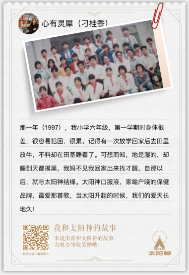 说好一个故事,胜过千言万语。粉丝的故事生动地展示了太阳神品牌在成长过程中所经历的成功、挫折、欢笑和泪水,让太阳神品牌于迅速变幻的市场中,更显热度、深度和温度。 (原标题:两万封信,共述“我和太阳神的故事”) 责任编辑:小宇 解读新闻热点、呈现敏感事件、更多独家分析,尽在以下微信公号,扫描二维码免费阅读。