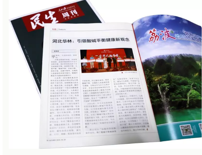 【直报网北京11月6日讯】(华林)10月29日出版的2018年第20期《民生周刊》(总第268期)刊发专题文章——《河北华林:引领酸碱平衡健康新观念》,对公司在引领酸碱平衡健康新观念、积极承担社会责任等方面做出的努力和贡献给予充分报道。在继《工商行政管理》杂志、《消费日报》《中国食品报》等国家主流媒体及宣传平台纷纷点赞华林后,此次得到人民日报社主管主办媒体的首肯与推介,也再一次印证和体现了华林事业是一份禁得起考验、充满正能量、前景广阔的大爱事业! 《民生周刊》杂志创刊于2010年9月,由人民日报社主管主办,是我国唯一的专业关注民生领域的综合类新闻杂志,具有广泛的社会影响力。作为一份专注民生问题、为民生服务的平面媒体,《民生周刊》杂志始终秉持“百姓声音、权威解读、民生视角、时代高度”的办刊理念,以坚持正确导向,关注百姓生活,反映社情民意,促进和谐民生为办刊宗旨,对民生领域民众关心的热点、社会关注的焦点、党政关切的重点进行集中报道。 本期报道一方面关注了公司以“弘扬中华民族食疗文化、推广酸碱平衡健康理念”为神圣使命,研发推广酸碱平系列产品、惠及万众健康的生动故事;一方面对公司秉持“中正立德”核心价值观,勇于承担社会责任、自觉融入精准扶贫和乡村振兴战略的大爱情怀给予充分肯定。