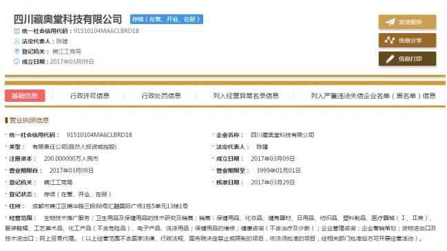 【直报网北京2月16日讯】(直销头条网)直销人透露,四川藏奥堂科技有限公司(以下简称藏奥堂)采用直销模式运作市场。 ![]() 据藏奥堂官网资料显示,四川藏奥堂科技有限公司是一家以足浴为基础,集健康养生产品研发、销售为一体的综合性健康管理公司,公司培养了一批学术过硬、经验丰富的研发生产人员,保证了产品的高效与安全。同时公司还建立了一只高学历、高技能的运营团队,致力于在将家庭健康养生的新方式带进千家万户。 直销头条网编辑在国家企业信用信息公示系统查询到藏奥堂成立于2017年03月09日,注册资金200万人民币,法人代表陈建,行政董事加总经理陈建,监事高英,股东有陈建、高英。